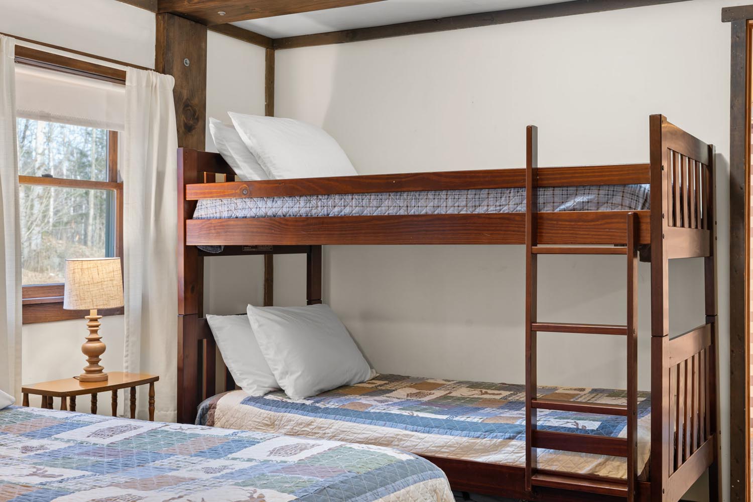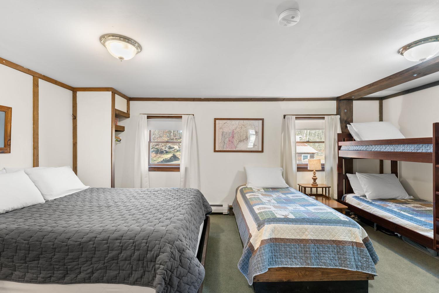 Individual room featuring 1 queen bed, 1 single bed, and 1 set of single bunk beds (upper bunk rated for kids < 18 only) with ensuite bathroom. Bathroom with shower, basic soaps & hairdryer. Breakfast included.